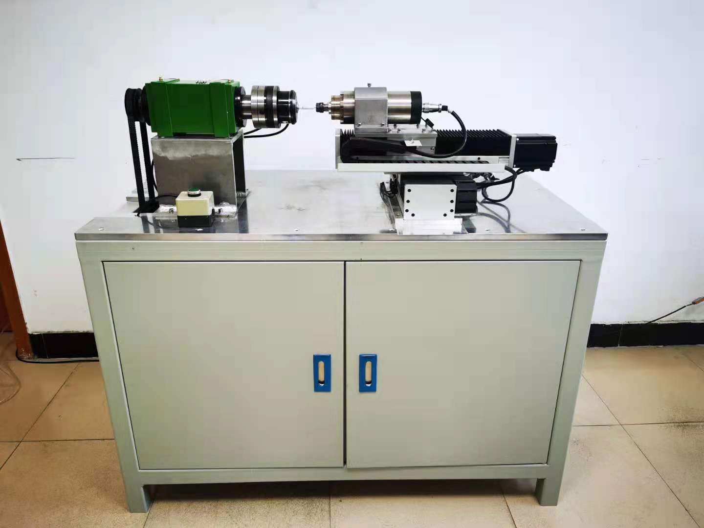 “高精度玻璃管內(nèi)表面自動(dòng)打磨裝置”主要用于解決高硼硅玻璃管內(nèi)表面的機(jī)械化全自動(dòng)打磨難題。該裝置主要包括高精度玻璃管夾持機(jī)構(gòu)、高精度夾套、精密傳動(dòng)主軸、高速研磨電主軸、金剛石磨頭、X軸進(jìn)給機(jī)構(gòu)、Y軸進(jìn)給機(jī)構(gòu)、加液機(jī)構(gòu)以及電控系統(tǒng)等;裝置在PLC控制系統(tǒng)的作用下,根據(jù)打磨工藝要求,設(shè)計(jì)一套高精度微小圓弧路徑控制算法,實(shí)現(xiàn)水準(zhǔn)器內(nèi)表面打磨過程中磨頭的路徑規(guī)劃。